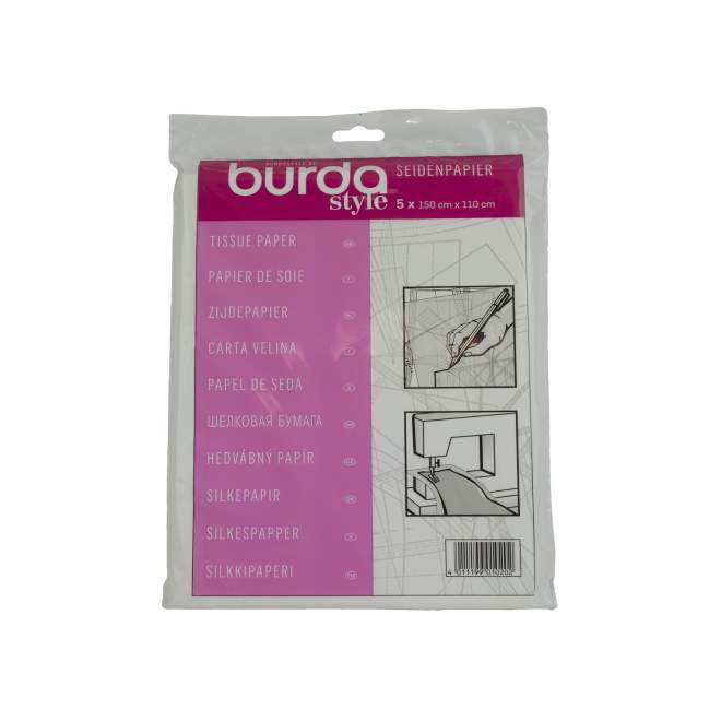 Référence : BURDA/SOIELe papier de soie burda, permet de décalquer des motifs à broder ainsi que des patrons, protège la surface des tissus délicats et rembourrer les chapeaux et les chaussures.