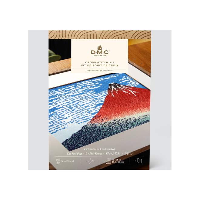 Référence : DMC/tableau-Le Mont FujiLe Red Fuji représente le mont Fuji rougeoyant à l'aube sous un ciel clair. Transformer cette estampe iconique en broderie au point de croix vous permettra de découvrir cette œuvre d'art sous un nouveau jour, en lui ajoutant de l'éclat et de la texture grâce aux fils Mouliné Spécial.
