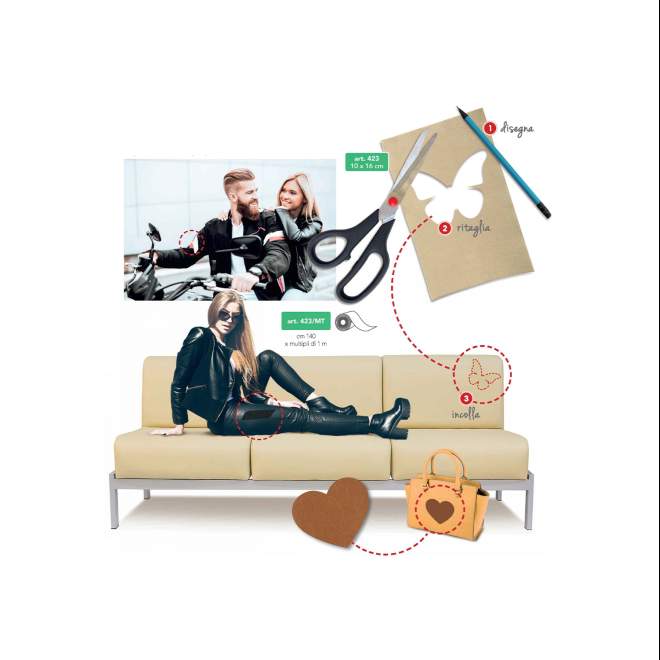 Les canapés, sacs à main, vestes, vêtements et accessoires en cuir ou simili cuir abîmés ou détériorés peuvent être revitalisés grâce à un patch adhésif orné d'une fleur, d'un rectangle, d'un écusson ou de tout autre motif de votre choix, dessiné et découpé. Les selles de moto, de vélo, les fauteuils en cuir, etc., sont autant d'exemples des nombreuses applications de ce patch en simili cuir, un produit de qualité qui reproduit fidèlement le grain et la souplesse du cuir tanné véritable.